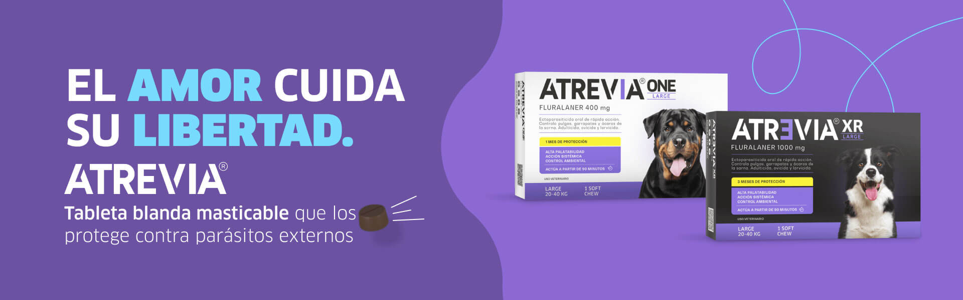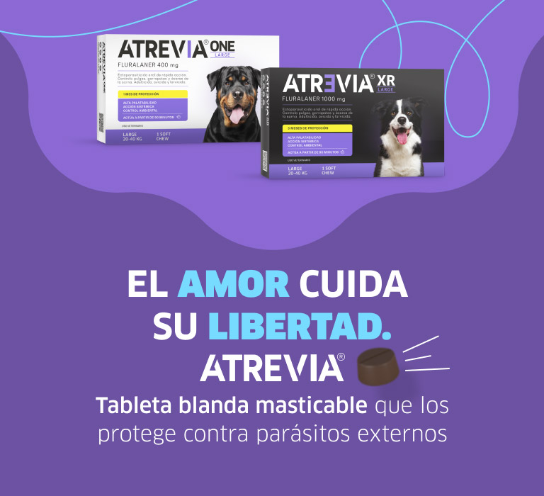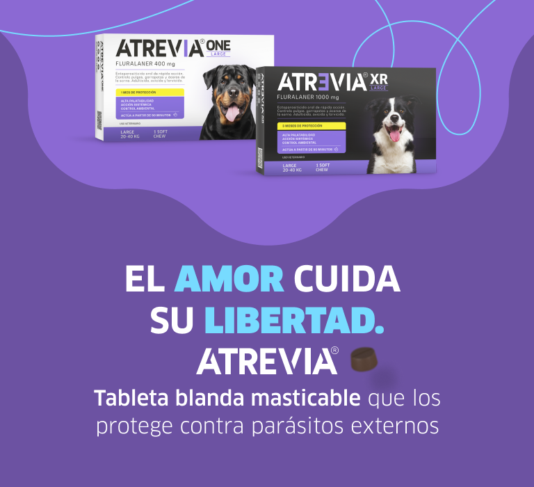 ATREVIA® es una marca especializada en proteger a tu mascota de los principales parásitos externos, como pulgas, garrapatas y ácaros. Sabemos que su bienestar es una prioridad para ti, por eso desarrollamos soluciones antiparasitarias pensadas para cada tamaño de perro, ayudándolos a vivir más tranquilos, saludables y libres de los riesgos y enfermedades que estos parásitos pueden transmitir.